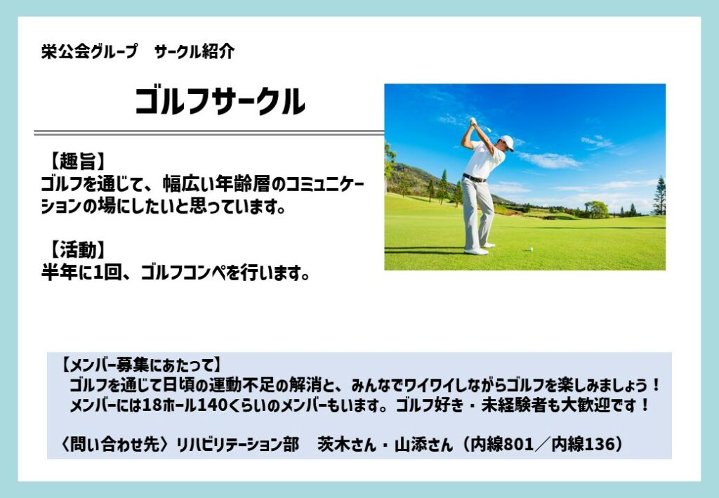 3/2(土)にサークルメンバーが集まり、ゴルフコンペを行いました。 医療・福祉両部門から13名が参加し、職種も医師やリハセラピスト、介護士などゴルフを通じて幅広く交流することができました!