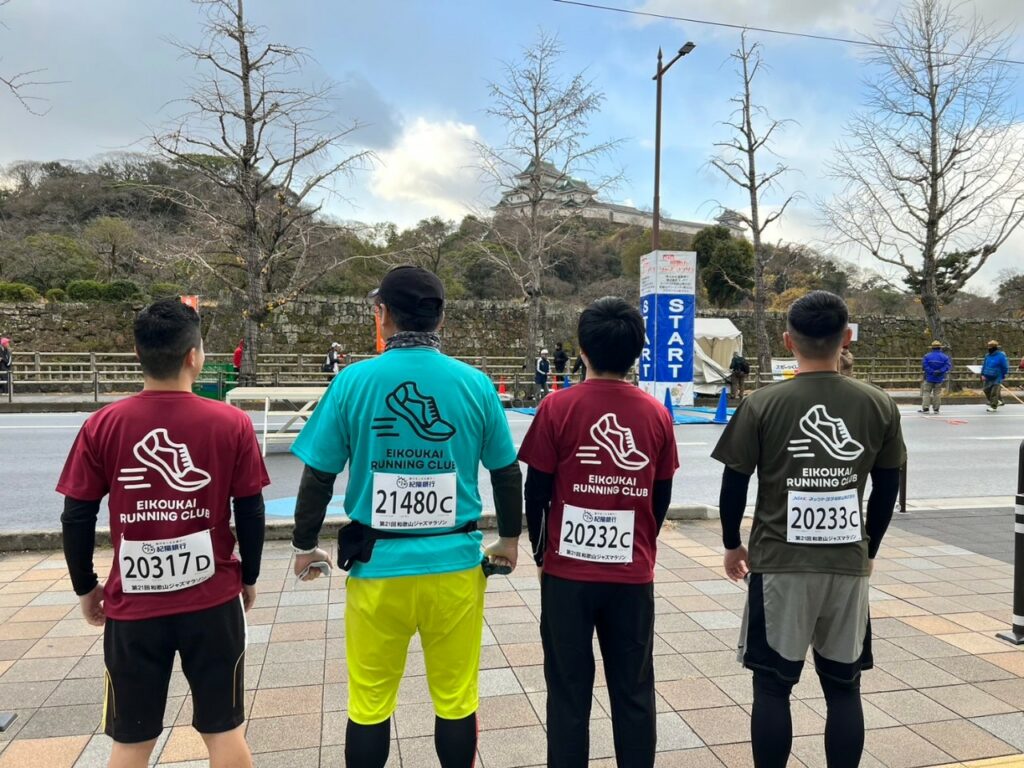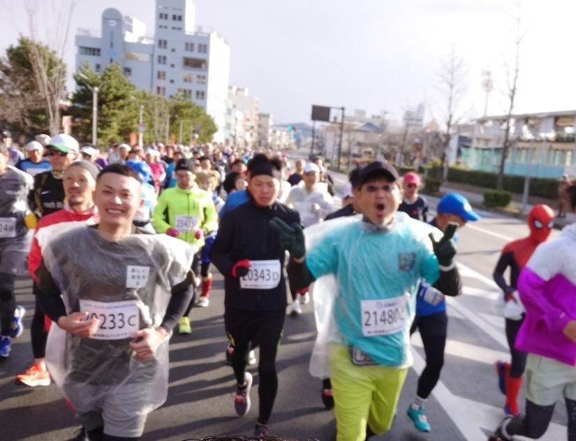当日は雪がちらつく寒い中でしたが、和歌山城からマリーナシティまで、しっかりと全員が21キロを走りきりました。