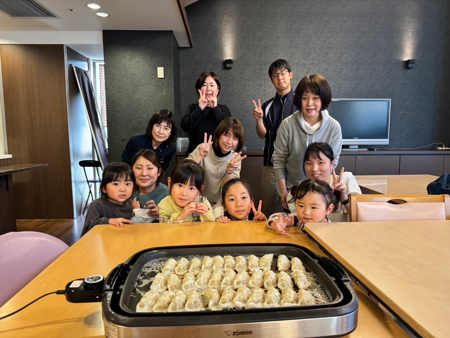 メンバーと子どもたちで賑やかに行うことができ、とても楽しいひと時になりました! 今回の美味しいものは訪問看護の西本さんおススメのぎょうざの丸岡の餃子で、餃子とタレを食べ比べしました🍽️