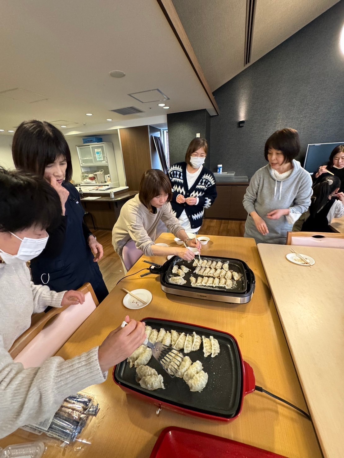 実際に焼いてみてわかった焼き方のコツは ・粉を落としてから焼く ・残った粉が落ちるくらい、少しずつまんべんなく、水を入れると周りがパリッと焼ける ・少し焦げるくらい焼く ・みんなで食べると美味しさUP!! でした! 今後のサークルの予定としては年2回ほど行う予定で、次回はスイーツを予定しております💕 今後も気になる食べ物があれば、みんなで楽しく食べ、職員の皆様に紹介できたらなと思っています🧸