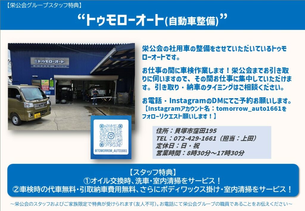 栄公会のスタッフおよびご家族限定で特典を出していただいております!