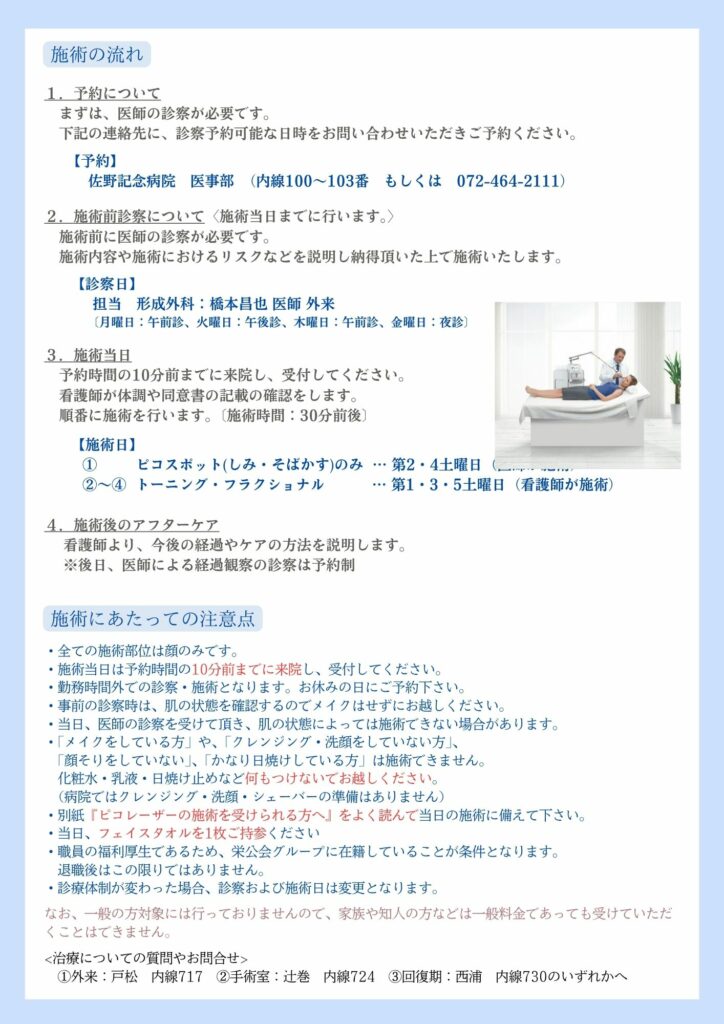 栄公会グループの福利厚生の一つとして、スタッフ限定(本人のみ)でピコレーザーによるシミ取り等(自費診療)を割引価格で実施いたします!