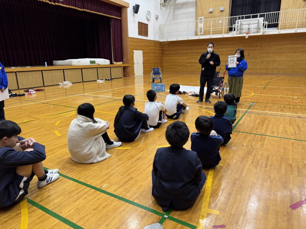 2月9日(月)に大木小学校にて、泉佐野市社会福祉協議会と一緒に、小学生向けに模擬高齢者体験を実施しました。当院からはリハビリテーション部の森マネージャーが”先生”として参加し、目が見えにくくなる・耳が聞こえにくくなる体験、片麻痺体験、高齢者体験、車いす体験などを行いました。
