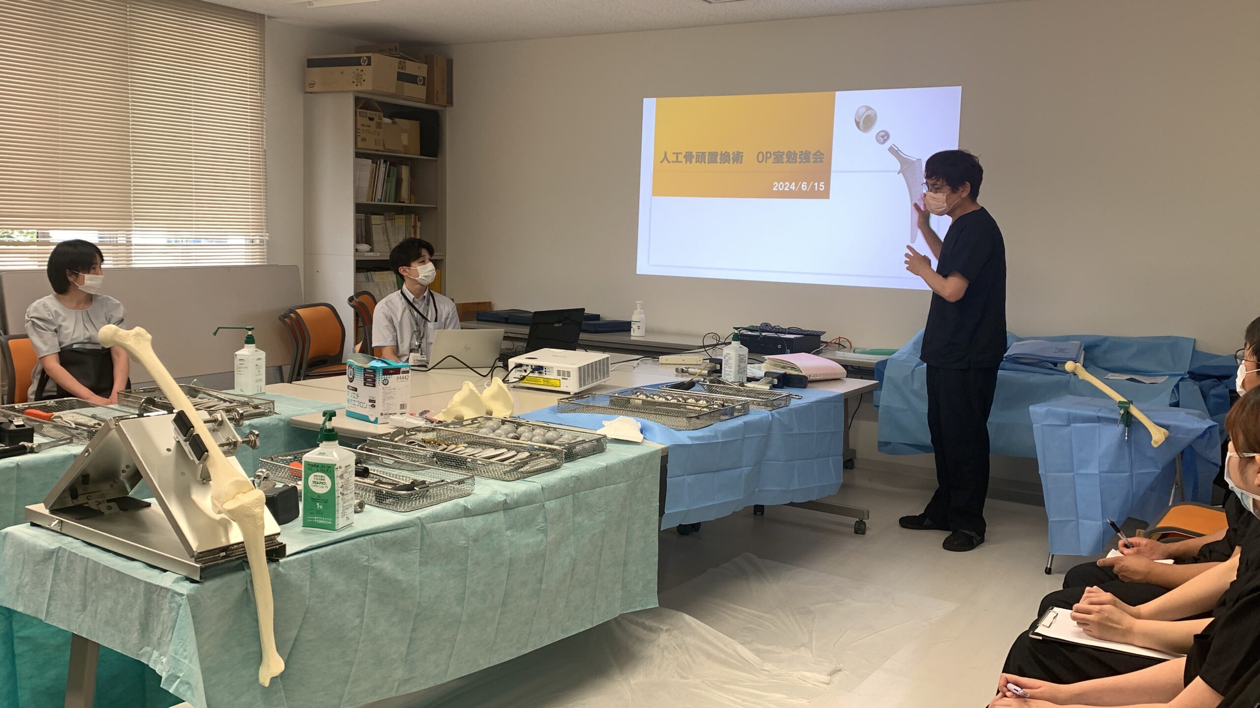 6月15日(土)に当院手術室主催の人工骨頭置換術セミナーを開催いたしました。当日は野上病院・玉井病院・永山病院・羽原病院・大阪晴愛病院の手術室看護師の皆様が参加されました。
