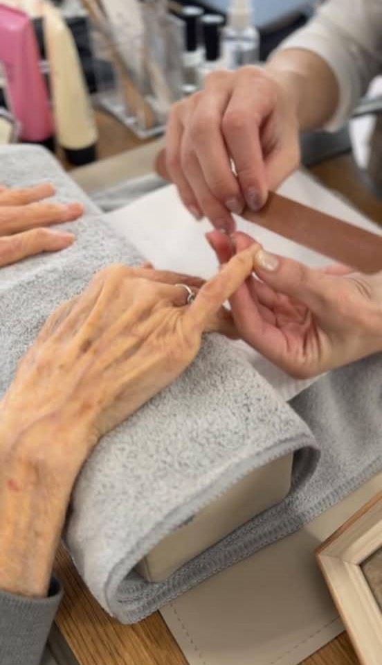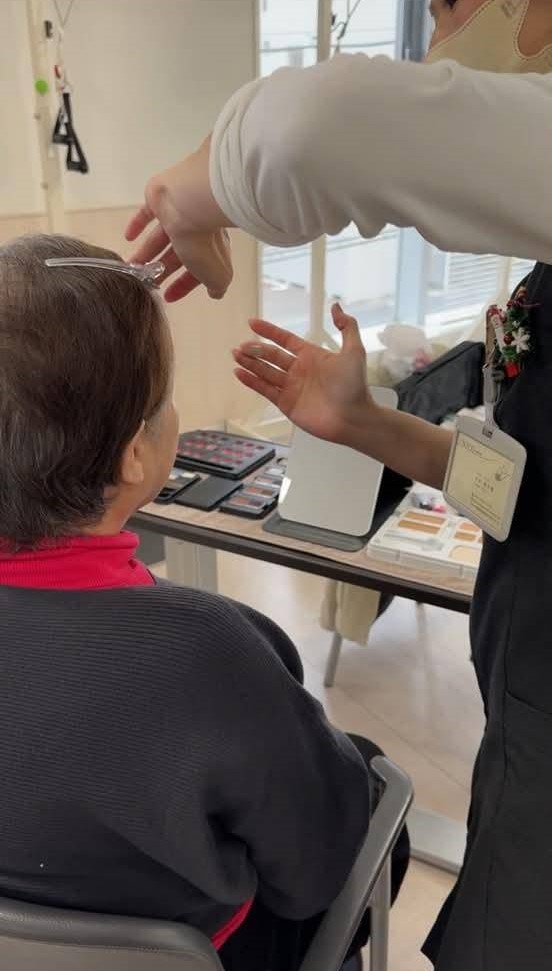 デイサービスセンターアムリタでは、ご利用者に対してボディケアやメイクを提供し、キレイになっていただくことで、より明るい気持ちになっていただき、日々の充実感を味わっていただいています。