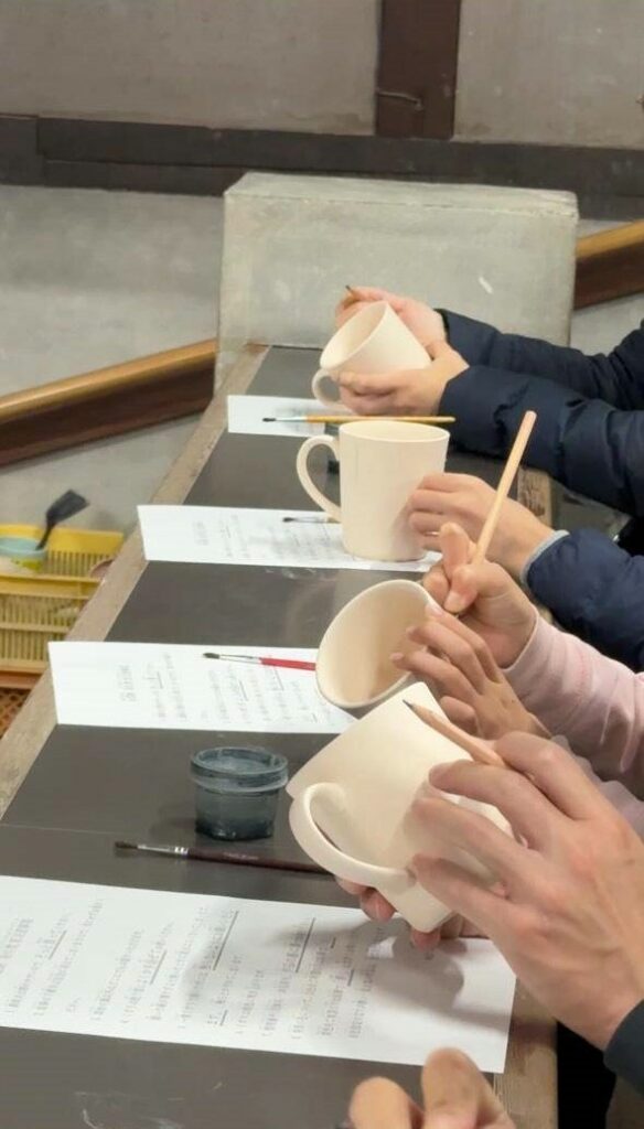 水茎焼陶芸の里での絵付け体験や、美味しい食事、ケーブルカーに乗って比叡山、延暦寺へ。