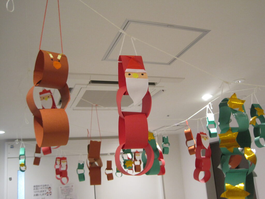 グループホーム栄公・アムリタの共同作業で、リハビリ作業療法士さんの指導でクリスマス飾り制作しました。